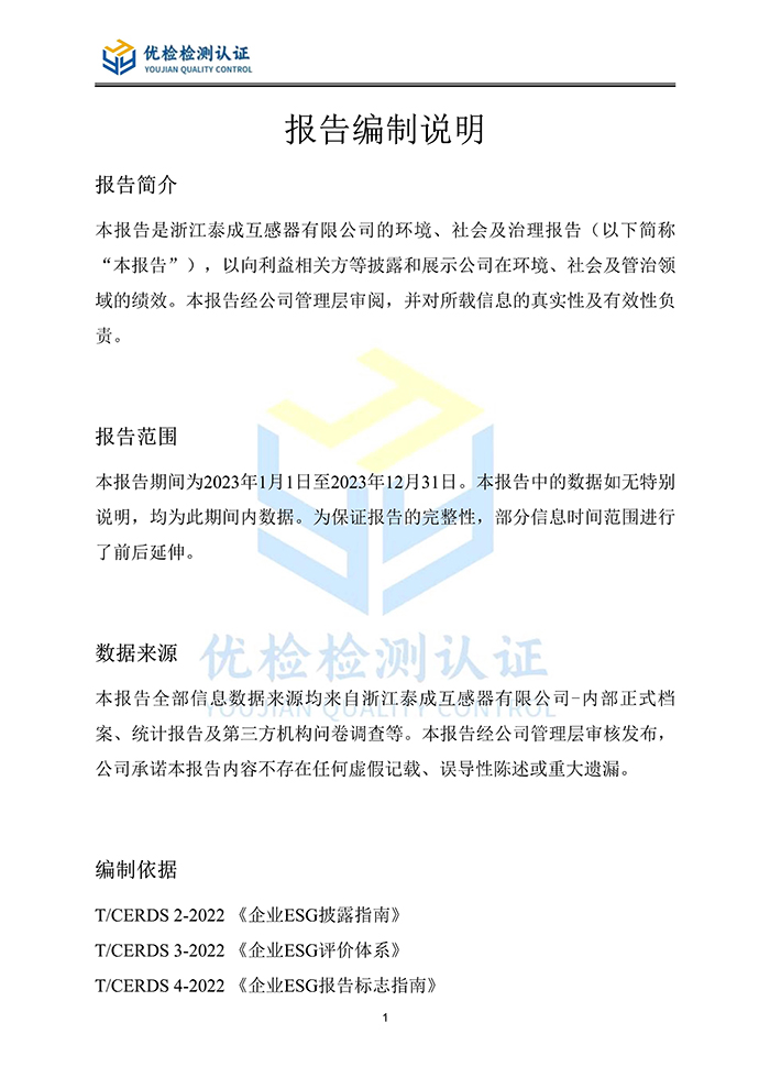 浙江泰成互感器有限公司-ESG(环境、社会和公司治理)报告