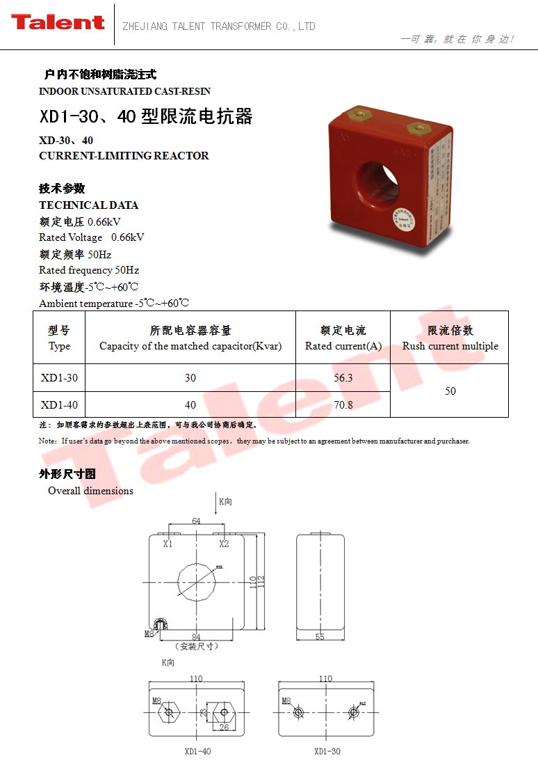 XD1-30、40型限流电抗器