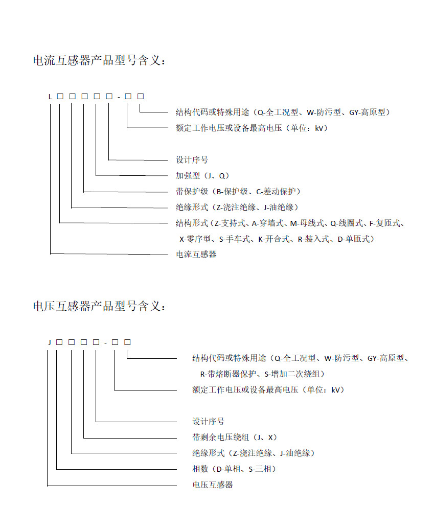 互感器产品型号含义