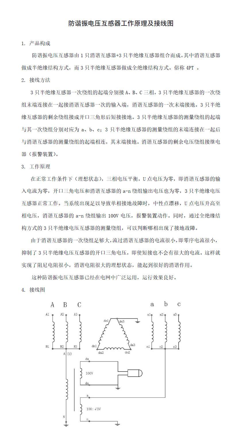 防谐振电压互感器工作原理及接线图